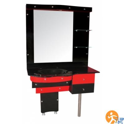 Erkek Kuaför Tezgahı Cam Lavabolu Q101 Seçkin erkek kuaför salonlarına yönelik kırmızı siyah renkte erkek kuaför tezgahı. Ürün 192cm boyunda